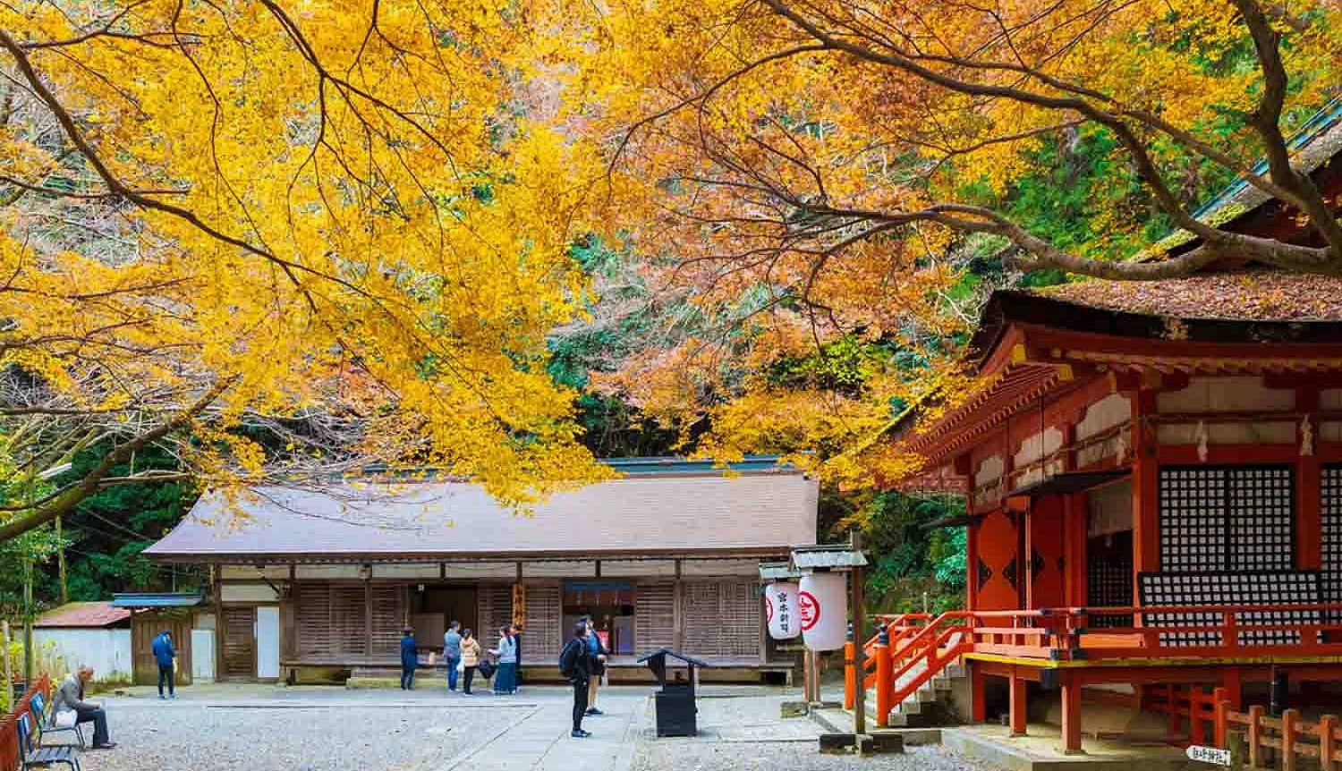 「金刀比羅宮」秋天紅葉極為迷人,每年約11月中旬至12月上旬,神苑、櫻馬場、裏参道及白峰神社等處楓葉染上橘、紅、金黃層次,與古木和朱紅建築交相映襯。沿石階漫步或遠眺山谷景致,都能感受金刀比羅宮特有的寧靜與壯麗秋意。