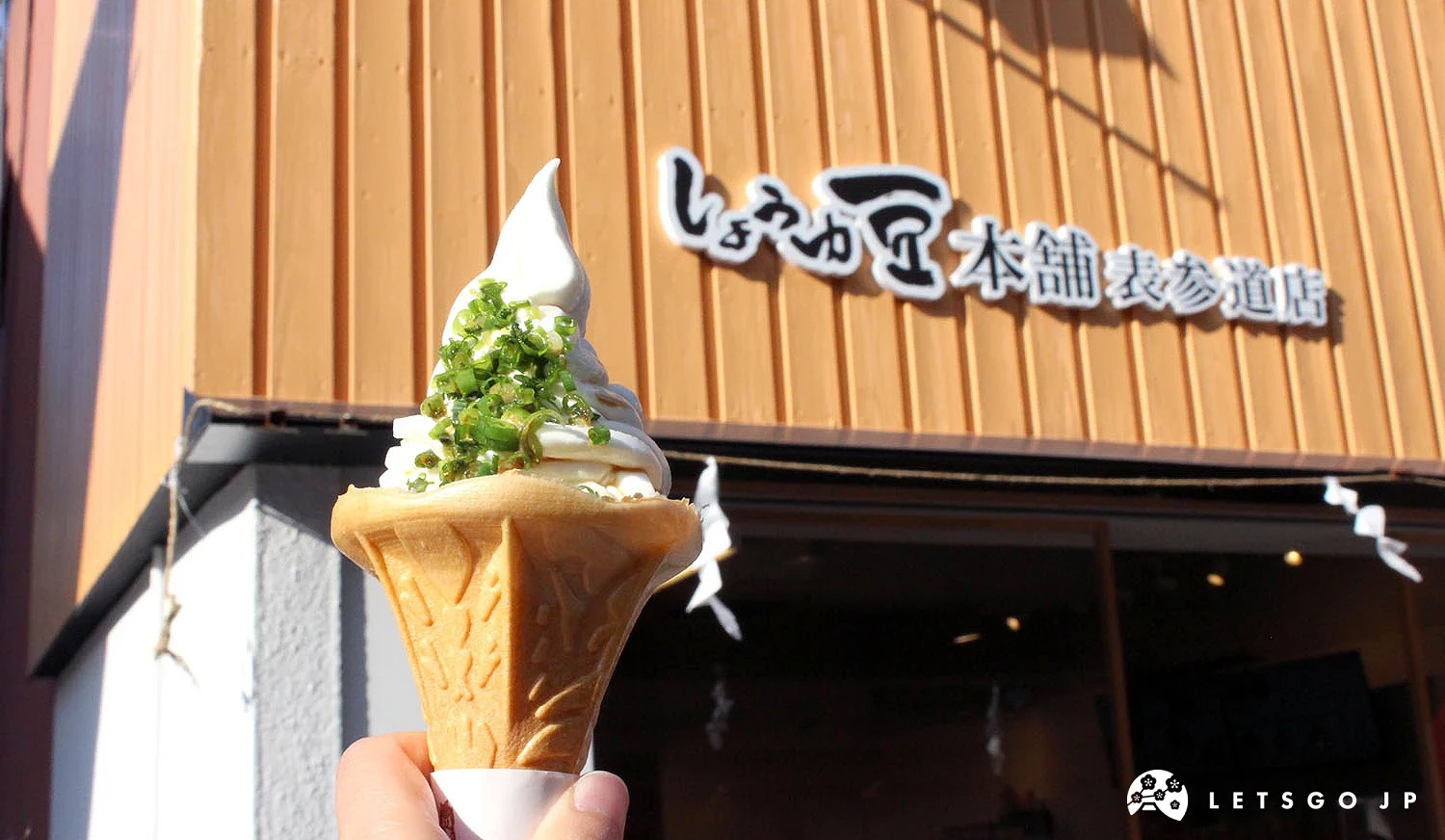 位於參道上的醬油豆本舖,以當地風味為靈感,推出了造型與味道都極具衝擊力的「釜玉霜淇淋」。在雪白的霜淇淋上,淋上醬油與蔥花,鹹甜交錯卻令人印象深刻的味覺體驗。若對新奇又有趣的和風甜點感興趣,釜玉霜淇淋絕對值得一試!