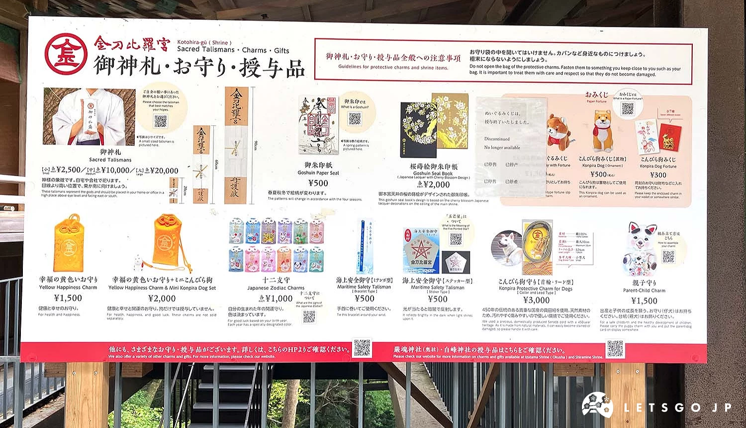 除了以上設計獨特的護身符外,金刀比羅宮還提供學業守、結緣守、十二生肖御守等多種選擇,展現神社涵蓋多元祈願需求,滿足不同人生階段與願望的守護祈福。下次造訪金刀比羅宮不妨為自己或身邊的人挑選一份祝福。