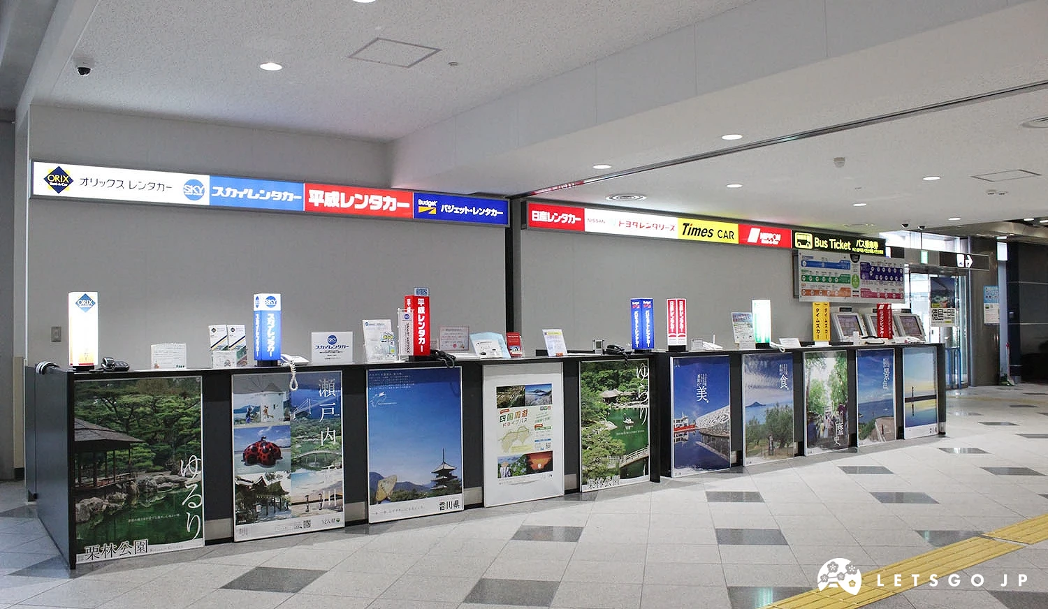 抵達高松機場後,面向服務台的左側即可看到租車公司的櫃檯。建議事先預約並備妥國際駕照,報到後稍等即可由業者接駁至營業所辦理取車。其中有提供「機場與取車地接駁服務」的租車公司,並支援異地還車服務,讓旅程更彈性便利。